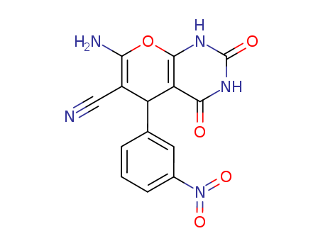 - Synonyms:7-amino-6-cyano-5-(3-nitrophenyl)-5H-pyrano[2,3-d]pyrimidine-2,4(1H,3H)-dione;7-amino-5-(3-nitrophenyl)-2,4-dioxo-2,3,4,5-tetrahydro-1H-pyrano[2,3-d]pyrimidine-6-carbonitrile;7-amino-5-(3-nitrophenyl)-2,4-dioxo-2,3,4,5-tetrahydro-1H-pyrano[2,3 d]pyrimidine-6-carbonitrile;7-Amino-5-(3-nitro-phenyl)-2,4-dioxo-1,3,4,5-tetrahydro-2H-pyrano[2,3-d]pyrimidine-6-carbonitrile;