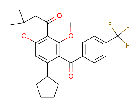 - Synonyms:7-Cyclopentyl-5-methoxy-2,2-dimethyl-6-[4-(trifluoromethyl)benzoyl]-2,3-dihydro-4H-chromen-4-one
