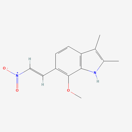 - Synonyms:70447-62-0;DTXSID301346098;Q63409665;7-METHOXY-2,3-DIMETHYL-6-(2-NITROVINYL)INDOLE;7-methoxy-2,3-dimethyl-6-[(E)-2-nitroethenyl]-1H-indole