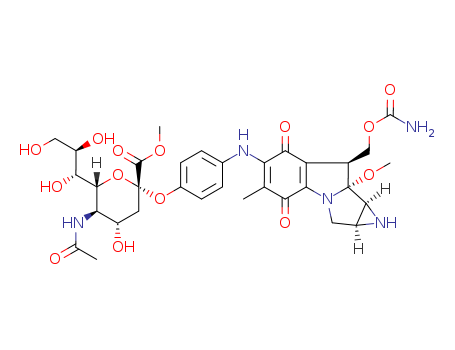 - Synonyms:D-glycero-a-D-galacto-2-Nonulopyranosidonicacid,4-[[8-[[(aminocarbonyl)oxy]methyl]-1,1a,2,4,7,8,8a,8b-octahydro-8a-methoxy-5-methyl-4,7-dioxoazirino[2',3':3,4]pyrrolo[1,2-a]indol-6-yl]amino]phenyl5-(acetylamino)-3,5-dideoxy-, methyl ester, [1aS-(1aa,8b,8aa,8ba)]-; Azirino[2',3':3,4]pyrrolo[1,2-a]indole,D-glycero-a-D-galacto-2-nonulopyranosidonicacid deriv.
