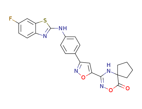 - Name: 7-{3-[4-(6-fluoro-benzothiazol-2-ylamino)-phenyl]-isoxazole-5-yl}-9-oxa-6,8-diaza-spiro[4,5]dec-7-en-10-one