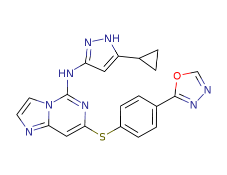 7-(4-(1,3,4-oxadiazol-2-yl)phenylthio)-N-(5-cyclopropyl-1H-pyrazol-3-yl)imidazo[1,2-f]pyrimidin-5-amine(883736-07-0)