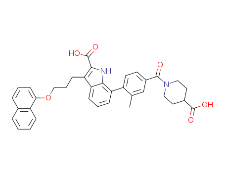 - Name: 7-(4-((4-carboxypiperidin-1-yl)carbonyl)-2-methylphenyl)-3-(3-(1-naphthyloxy)propyl)-1H-indole-2-carboxylic acid