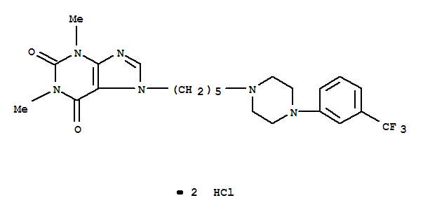 - Synonyms:1H-Purine-2,6-dione,3,7-dihydro-1,3-dimethyl-7-[5-[4-[3-(trifluoromethyl)phenyl]-1-piperazinyl]pentyl]-,dihydrochloride (9CI)