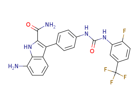 - Synonyms:7-amino-3-{4-[3-(2-fluoro-5-trifluoromethylphenyl)ureido]phenyl}-1H-indole-2-carboxamide
