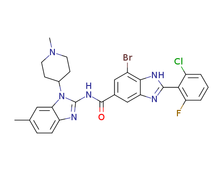- Name: 7-bromo-2-(2-chloro-6-fluorophenyl)-1H-benzimidazole-5-carboxylic acid (1-(1-methyl-piperidin-4-yl)-6-methyl-1H-benzimidazol-2-yl)-amide