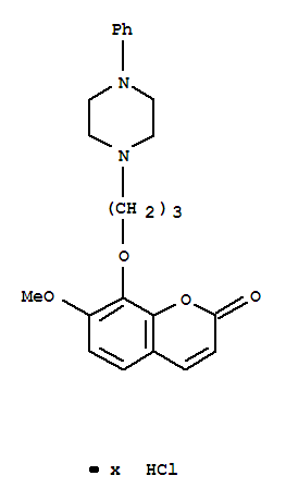 - Synonyms:2H-1-Benzopyran-2-one,7-methoxy-8-[3-(4-phenyl-1-piperazinyl)propoxy]-, hydrochloride (9CI)