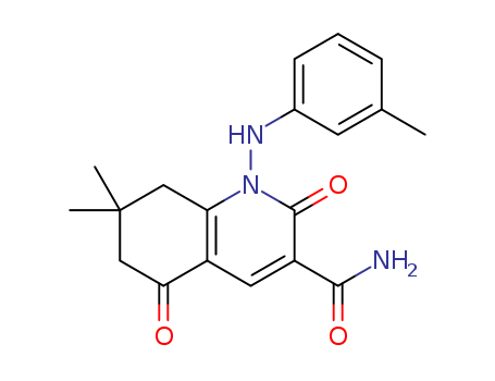 - Synonyms:7,7-dimethyl-2,5-dioxo-1-m-tolylamino-1,2,5,6,7,8-hexahydro-quinoline-3-carboxylic acid amide