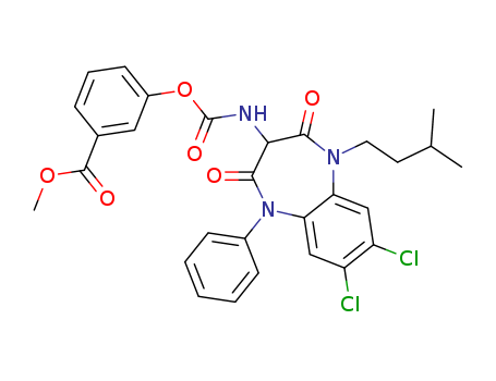7,8-Dichloro-2,4-dioxo-3-[(3-methoxycarbonyl)phenyloxycarbonyl]amino-1-(3-methyl-1-butyl)-5phenyl-2,3,4,5-tetrahydro-1H-1,5-benzodiazepine(151620-37-0)