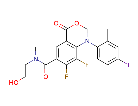 - Name: 7,8-difluoro-1-(4-iodo-2-methyl-phenyl)-4-oxo-1,4-dihydro-2H-3,1-benzoxazine-6-carboxylic acid (2-hydroxy-ethyl)-methyl-amide