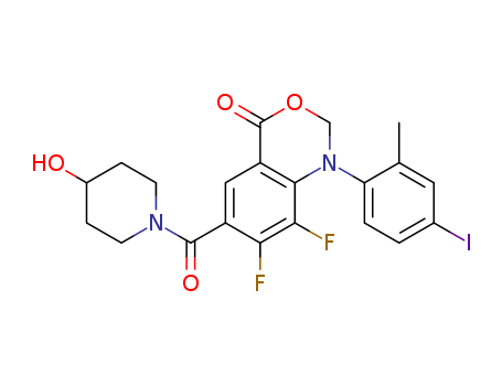 - Name: 7,8-difluoro-6-(4-hydroxy-piperidine-1-carbonyl)1-(4-iodo-2-methyl-phenyl)-1,2-dihydro-3,1-benzoxazin-4-one
