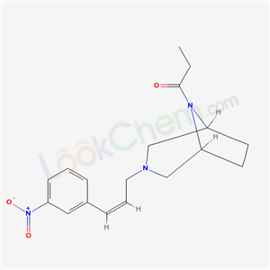 - Synonyms:1-{3-[(Z)-3-(4-Nitro-phenyl)-allyl]-3,8-diaza-bicyclo[3.2.1]oct-8-yl}-propan-1-one;3-(PARA-NITROCINNAMYL)-8-PROPIONYL-3,8-DIAZABICYCLO(3.2.1)OCTANE;3-<3-(4-Nitro-phenyl)-prop-2-enyl>-8-propionyl-3,8-diazabicyclo<3.2.1>octan;