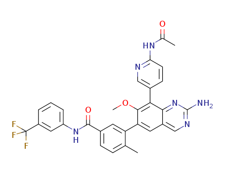 8-[2-(acetylamino)pyridin-5-yl]-2-amino-7-methoxy-6-[2-methyl-5-N-(3-trifluoromethylphenyl)carbamoylphenyl]quinazoline(1191930-98-9)