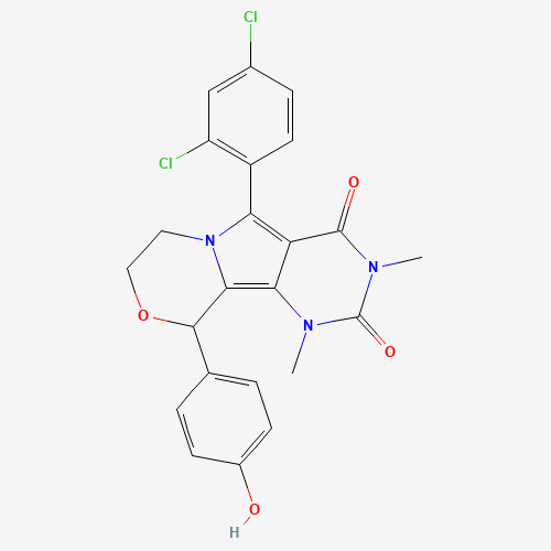- Synonyms:DTXSID701101224;STL009166;AKOS022090538;929971-88-0;5-(2,4-Dichlorophenyl)-1,7,8,10-tetrahydro-10-(4-hydroxyphenyl)-1,3-dimethyl-2H-pyrimido[4a(2),5a(2):3,4]pyrrolo[2,1-c][1,4]oxazine-2,4(3H)-dione;5-(2,4-dichlorophenyl)-10-(4-hydroxyphenyl)-1,3-dimethyl-1,7,8,10-tetrahydro-2H-pyrimido[4',5':3,4]pyrrolo[2,1-c][1,4]oxazine-2,4(3H)-dione