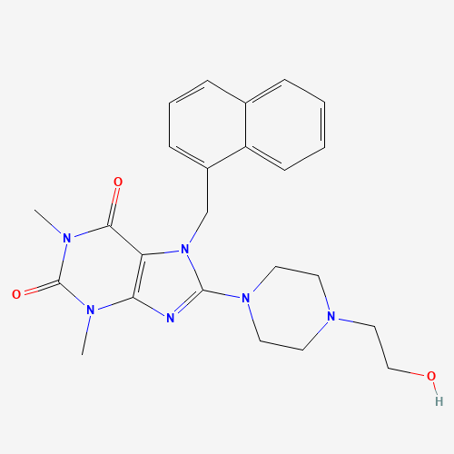 - Synonyms:BAS 05914481;STL001925;AKOS000580334;476479-96-6;SR-01000321872;SR-01000321872-1;8-(4-(2-Hydroxyethyl)piperazin-1-yl)-1,3-dimethyl-7-(naphthalen-1-ylmethyl)-1H-purine-2,6(3H,7H)-dione;8-[4-(2-hydroxyethyl)-1-piperazinyl]-1,3-dimethyl-7-(1-naphthylmethyl)-3,7-dihydro-1H-purine-2,6-dione;8-[4-(2-hydroxyethyl)piperazin-1-yl]-1,3-dimethyl-7-(naphthalen-1-ylmethyl)-3,7-dihydro-1H-purine-2,6-dione;8-[4-(2-hydroxyethyl)piperazin-1-yl]-1,3-dimethyl-7-[(naphthalen-1-yl)methyl]-2,3,6,7-tetrahydro-1H-purine-2,6-dione