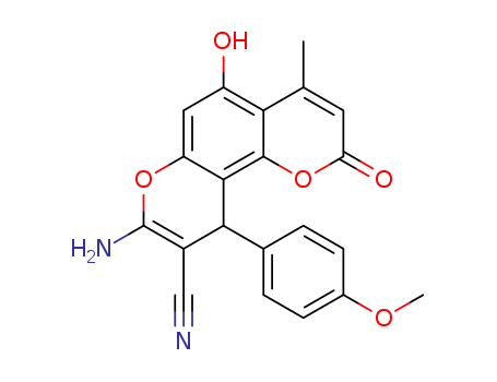 - Synonyms:8-amino-5-hydroxy-4-methyl-10-(4-methoxylphenyl)-2-oxo-2H,10H-pyrano[2,3-h]chromene-9-carbonitrile