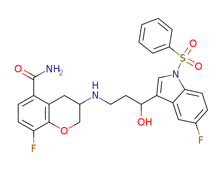 - Synonyms:8-fluoro-3-({3-[5-fluoro-1-(phenylsulfonyl)-1H-indol-3-yl]-3-hydroxypropyl}amino)chromane-5-carboxamide