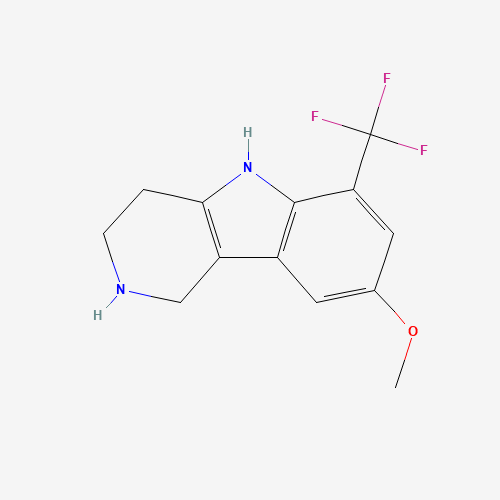- Synonyms:922510-96-1;8-methoxy-6-trifluoromethyl-2,3,4,5-tetrahydro-1H-pyrido[4,3-b]indole;1H-Pyrido[4,3-b]indole,2,3,4,5-tetrahydro-8-methoxy-6-(trifluoromethyl)-;8-methoxy-6-(trifluoromethyl)-2,3,4,5-tetrahydro-1H-pyrido[4,3-b]indole;SCHEMBL1843414;DTXSID701152134;AT38536;2,3,4,5-Tetrahydro-8-methoxy-6-(trifluoromethyl)-1H-pyrido[4,3-b]indole;8-Methoxy-6-(trifluoromethyl)-2,3,4,5-tetrahydro-1H-pyrido [4,3-b]indole