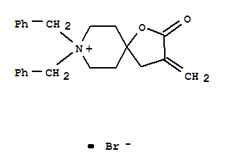 - Synonyms:1-Oxa-8-azoniaspiro[4.5]decane,3-methylene-2-oxo-8,8-bis(phenylmethyl)-, bromide (9CI);1-Oxa-8-azaspiro[4.5]decane, 1-oxa-8-azoniaspiro[4.5]decane deriv.; NSC 340837