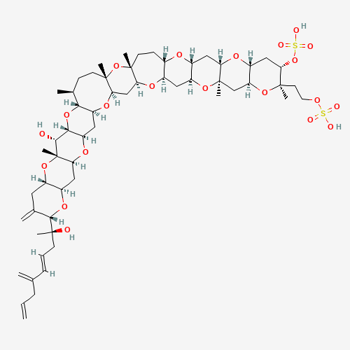 - 255041-59-9/[(1R,3S,5R,7S,9R,11S,13R,14S,16R,18S,20R,22S,25R,27S,30S,31R,33S,34R,35R,37S,40S,42R,44S,46R,48S)-34-hydroxy-13-(2-hydroxyethyl)-40-[(2R,3E)-2-hydroxy-5-methylideneocta-3,7-dien-2-yl]-13,25,27,30,35-pentamethyl-39-methylidene-4,8,12,17,21,26,32,36,41,45,49-undecaoxaundecacyclo[25.22.0.03,25.05,22.07,20.09,18.011,16.031,48.033,46.035,44.037,42]nonatetracontan-14-yl] hydrogen sulfate
