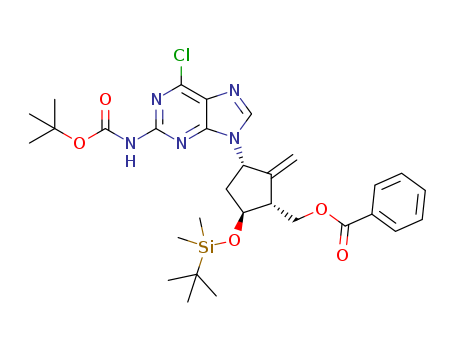 9-[(1S,3R,4S)-4-tert-butyldimethylsilyloxy-3-(benzoyloxymethyl)-2-methylene-cyclopentyl]-6-chloro-9H-purine-2-carbamic acid tert-butyl ester(1354715-54-0)
