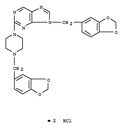 - Synonyms:9H-Purine,9-(1,3-benzodioxol-5-ylmethyl)-2-[4-(1,3-benzodioxol-5-ylmethyl)-1-piperazinyl]-,dihydrochloride (9CI); 9H-Purine, 9-piperonyl-2-(4-piperonyl-1-piperazinyl)-,dihydrochloride (8CI)