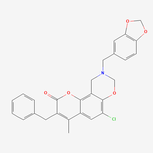- Name: 9-(1,3-benzodioxol-5-ylmethyl)-3-benzyl-6-chloro-4-methyl-9,10-dihydro-2H,8H-chromeno[8,7-e][1,3]oxazin-2-one
