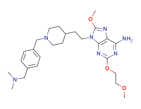 - Synonyms:9-{2-[1-(4-Dimethylaminomethylbenzyl)piperidin-4-yl)ethyl}-8-methoxy-2-(2-methoxyethoxy)-9H-purin-6-ylamine