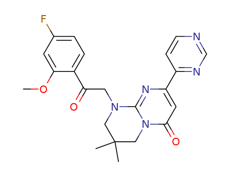 9-[2-(4-Fluoro-2-methoxy-phenyl)-2-oxo-ethyl]-7,7-dimethyl-2-pyrimidin-4-yl-6,7,8,9-tetrahydro-pyrimido[1,2-a] pyrimidin-4-one(502928-02-1)