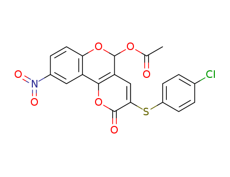 - Name: 9-nitro-3-(4-chlorophenylsulfanyl)-2-oxo-2H,5H-pyrano[3,2-c]chromen-5-yl acetate