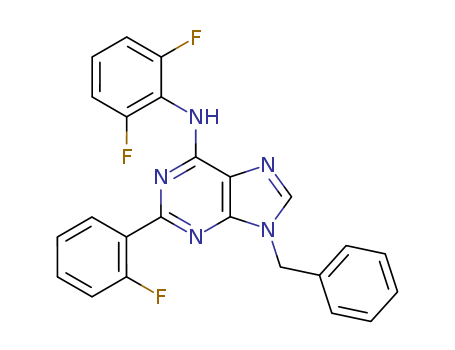 - 672958-49-5/9H-Purin-6-amine, N-(2,6-difluorophenyl)-2-(2-fluorophenyl)-9-(phenylmethyl)-