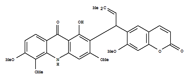 - Name: 9(10H)-Acridinone,1-hydroxy-3,5,6-trimethoxy-2-[1-(7-methoxy-2-oxo-2H-1-benzopyran-6-yl)-3-methyl-2-buten-1-yl]-,(-)-