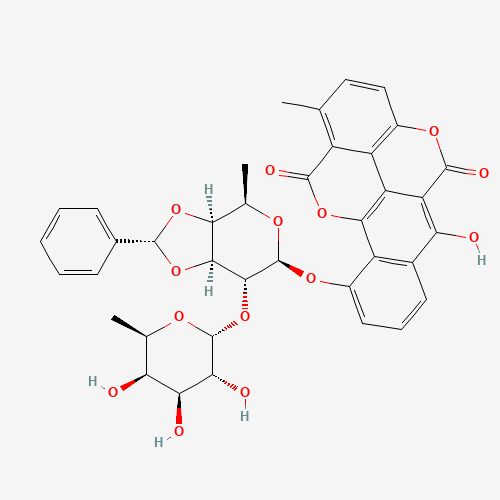 - Synonyms:A-132M;A9EUJ9G7KQ;132116-72-4;Benzo[h][1]benzopyrano[5,4,3-cde][1]benzopyran-5,12-dione, 10-[[6-deoxy-2-O-(6-deoxy-alpha-D-galactopyranosyl)-3,4-O-(phenylmethylene)-beta-D-galactopyranosyl]oxy]-6-hydroxy-1-methyl-, (R)-;Benzo[h][1]benzopyrano[5,4,3-cde][1]benzopyran-5,12-dione, 10-[[6-deoxy-2-O-(6-deoxy-alpha-D-galactopyranosyl)-3,4-O-[(R)-phenylmethylene]-beta-D-galactopyranosyl]oxy]-6-hydroxy-1-methyl-