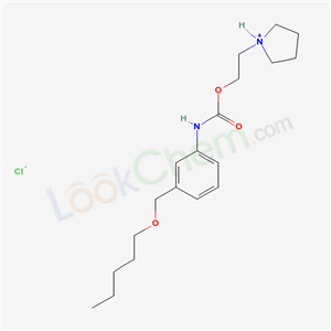 - Synonyms:Carbanilic acid,m-((pentyloxy)methyl)-,2-(1-pyrrolidinyl)ethyl ester,hydrochloride;m-((Pentyloxy)methyl)carbanilic acid 2-(1-pyrrolidinyl)ethyl ester hydrochloride;2-pyrrolidin-1-ium-1-ylethyl N-[3-(pentoxymethyl)phenyl]carbamate chloride;AMK 353;