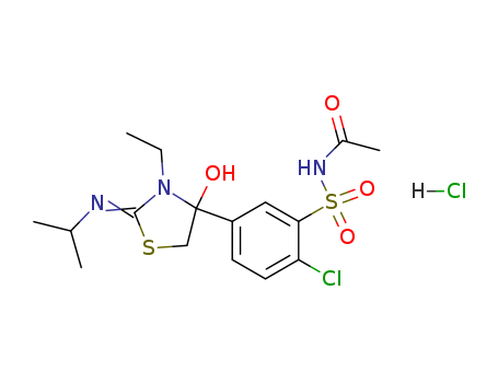 - Name: Acetamide, N-[[2-chloro-5-[3-ethyl-4-hydroxy-2-[(1-methylethyl)imino]-4-thiazolidinyl] phenyl]sulfonyl]-, monohydrochloride