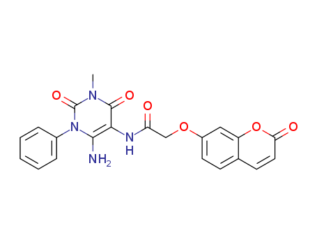- Synonyms:Acetamide, N-(6-amino-1,2,3,4-tetrahydro-3-methyl-2,4-dioxo-1-phenyl-5-pyrimidinyl)-2-[(2-oxo-2H-1-benzopyran-7-yl)oxy]-