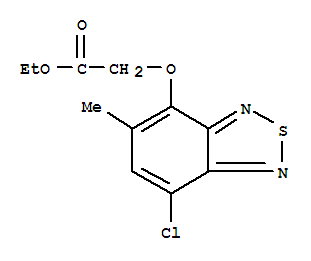 - Synonyms:Aceticacid, [(7-chloro-5-methyl-2,1,3-benzothiadiazol-4-yl)oxy]-, ethyl ester(8CI,9CI); 2,1,3-Benzothiadiazole, acetic acid deriv.;7-Chloro-4-ethoxycarbonylmethoxy-5-methyl-2,1,3-benzothiadiazole; Duphar 30-15;MCEB