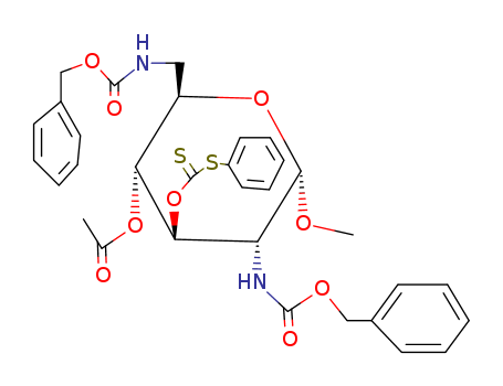 Acetic acid (2R,3R,4R,5R,6S)-5-benzyloxycarbonylamino-2-(benzyloxycarbonylamino-methyl)-6-methoxy-4-phenylsulfanylthiocarboxyoxy-tetrahydro-pyran-3-yl ester(68406-11-1)