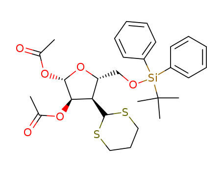 Acetic acid (2S,3R,4R,5S)-2-acetoxy-5-(tert-butyl-diphenyl-silanyloxymethyl)-4-[1,3]dithian-2-yl-tetrahydro-furan-3-yl ester(257277-49-9)