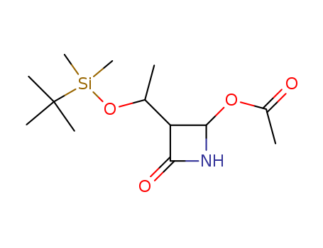 - Synonyms:(3S,4R)-3[(1R)-1-(t-butyldimethylsilyloxy)ethyl]-4-acetoxy-azetidin-2-one;(3R,4R) 4-acetoxy-3-[(1R)-(1-(tert-butyldimethylsilyloxy)ethyl)]azetidin-2-one;4-acetoxy-3(S)-[1(R)-{dimethyl-{2-methylprop-2-yl}silyloxy}ethyl]azetidin-2-one;4-acetoxy-3(S)-[1(R)-{dimethyl-(2-methylprop-2-yl)silyloxy}ethyl]-azetidin-2-one;Acetic acid (R)-3-[1-(tert-butyl-dimethyl-silanyloxy)-ethyl]-4-oxo-azetidin-2-yl ester;(1'R,3R,4R)-3-[1'-(t-butyldimethylsilyloxy)ethyl]-4-acetoxyazetidin-2-one;(3R,4S)-4-acetoxy-3-[1(R)-tert-butyldimethylsilyloxyethyl]-2-oxoazetidine;