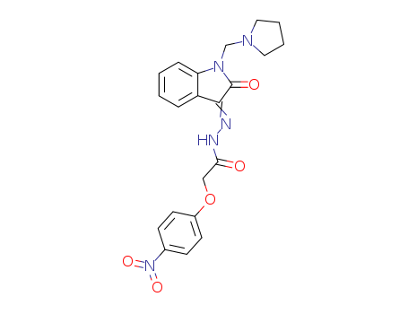 - Name: Acetic acid, (4-nitrophenoxy)-, (1,2-dihydro-2-oxo-1-(1-pyrrolidinylmethyl)-3H-indol-3-ylidene)hydrazide