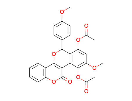 Acetic acid 7-acetoxy-9-methoxy-6-(4-methoxy-phenyl)-11-oxo-6H,11H-5,12-dioxa-chrysen-10-yl ester(74700-64-4)