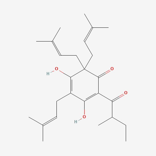 - Synonyms:ADLUPULONE;O2S4D7K08Y;28374-71-2;31769-60-5;UNII-O2S4D7K08Y;2,4-Cyclohexadien-1-one, 3,5-dihydroxy-4,6,6-tris(3-methyl-2-buten-1-yl)-2-(2-methyl-1-oxobutyl)-;35049-54-8;3,5-dihydroxy-2-(2-methylbutanoyl)-4,6,6-tris(3-methylbut-2-enyl)cyclohexa-2,4-dien-1-one;4-Cyclohexene-1,3-dione, 5-hydroxy-2,2,6-tris(3-methyl-2-buten-1-yl)-4-(2-methyl-1-oxobutyl)-;SCHEMBL817774;CHEBI:136852;DTXSID901318318;Q27894794;3,5-Dihydroxy-4,4,6-tris(3-methyl-2-butenyl)-2-(2-methylbutyryl)-2,5-cyclohexadien-1-one;3,5-Dihydroxy-2,6,6-tris(3-methyl-2-butenyl)-4-(2-methyl-1-oxobutyl)-2,4-cyclohexadien-1-one;3,5-dihydroxy-2-(2-methylbutanoyl)-4,6,6-tris(3-methylbut-2-en-1-yl)cyclohexa-2,4-dien-1-one;468-26-8