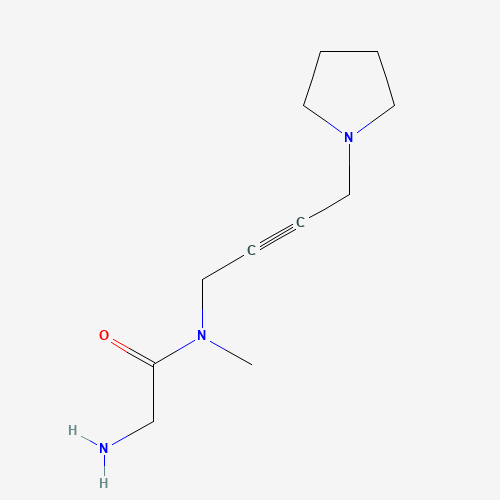 - Synonyms:N-Methyl-N-[4-(1-pyrrolidinyl)-2-butynyl]-2-aminoacetamide;124045-52-9;CHEMBL163317;SCHEMBL9452493;Aminoacetamide, N-methyl-N-[4-(1-pyrrolidinyl)-2-butynyl]-;DTXSID801181063;2-Amino-N-methyl-N-[4-(1-pyrrolidinyl)-2-butynyl]acetamide #;2-Amino-N-methyl-N-[4-(1-pyrrolidinyl)-2-butyn-1-yl]acetamide
