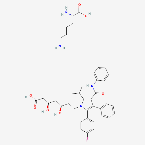 - Synonyms:Atorvastatin lysine;atorvastatin l-lysine;WK4UJ44C6N;Atorvastatin L-lysine [WHO-DD];UNII-WK4UJ44C6N;609843-23-4;L-Lysine, (betaR,deltaR)-2-(4-fluorophenyl)-beta,delta-dihydroxy-5-(1-methylethyl)-3-phenyl-4-((phenylamino)carbonyl)-1H-pyrrole-1-heptanoate (1:1);SCHEMBL979967;L-LYSINE, (.BETA.R,.DELTA.R)-2-(4-FLUOROPHENYL)-.BETA.,.DELTA.-DIHYDROXY-5-(1-METHYLETHYL)-3-PHENYL-4-((PHENYLAMINO)CARBONYL)-1H-PYRROLE-1-HEPTANOATE (1:1)