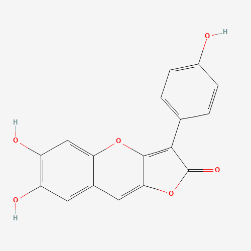 - Synonyms:Aurantricholide B;CHEBI:174228;DTXSID201161801;264923-56-0;6,7-dihydroxy-3-(4-hydroxyphenyl)uro[3,2-b]chromen-2-one;6,7-dihydroxy-3-(4-hydroxyphenyl)-2H-furo[3,2-b]chromen-2-one;6,7-Dihydroxy-3-(4-hydroxyphenyl)-2H-furo[3,2-b][1]benzopyran-2-one;6,7-Dihydroxy-3-(4-hydroxyphenyl)-2H-furo[3,2-b][1]benzopyran-2-one, 9CI