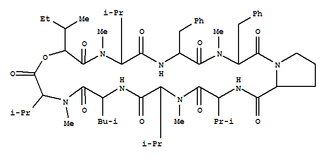 - Synonyms:AureobasidinA, 5-L-valine-8-(N-methyl-L-valine)-;1H,15H-Pyrrolo[1,2-m][1,4,7,10,13,16,19,22,25]oxaoctaazacycloheptacosine,cyclic peptide deriv.; Antibiotic R 106Xb;Cyclo[L-leucyl-N-methyl-L-valyl-(2R,3R)-2-hydroxy-3-methylpentanoyl-N-methyl-L-valyl-L-phenylalanyl-N-methyl-L-phenylalanyl-L-prolyl-L-valyl-N-methyl-L-valyl];L-Valine, N-[N-[N-[N-[1-[N-[N-[N-(2-hydroxy-3-methyl-1-oxopentyl)-N-methyl-L-valyl]-L-phenylalanyl]-N-methyl-L-phenylalanyl]-L-prolyl]-L-valyl]-N-methyl-L-valyl]-L-leucyl]-N-methyl-,a1-lactone, [R-(R*,R*)]-