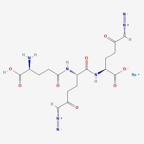 - Synonyms:Azotomycin sodium;1719 Sodium;55156-24-6;Azotomycin sodium salt;Antibiotic 1719 sodium salt;NSC 56654;A 10270B;Hexanoic acid, 6-diazo-2-(2-(4-amino-4-carboxybutyramido)-6-diazo-5-oxohexanamido)-, sodium;Glutamine, N-(1-((1-carboxy-5-diazo-4-oxopentyl)carbamoyl)-5-diazo-4-oxopentyl)-, sodium salt;sodium (S)-2-((S)-2-((S)-4-amino-4-carboxybutanamido)-6-diazo-5-oxohexanamido)-6-diazo-5-oxohexanoate;L-Norleucine, 6-diazo-N-(6-diazo-N-L-gamma-glutamyl-5-oxo-L-norleucyl)-5-oxo-, sodium salt;C17H23N7O8.xNa;C17-H23-N7-O8.x-Na;AKOS040750693;sodium;(2S)-2-[[(2S)-2-[[(4S)-4-amino-4-carboxybutanoyl]amino]-6-diazo-5-oxohexanoyl]amino]-6-diazo-5-oxohexanoate