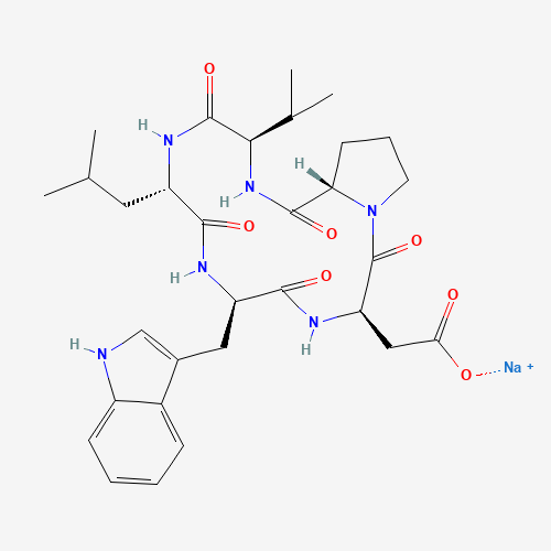 - Synonyms:BQ-123 sodium;UNII-05427HSQ1I;05427HSQ1I;Cyclo(D-alpha-aspartyl-L-prolyl-D-valyl-L-leucyl-D-tryptophyl), monosodium salt;136655-57-7;Q27236073;CYCLO(D-.ALPHA.-ASPARTYL-L-PROLYL-D-VALYL-L-LEUCYL-D-TRYPTOPHYL), MONOSODIUM SALT