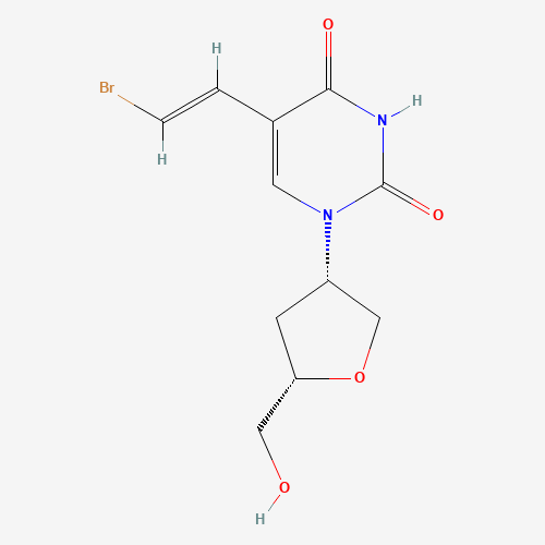 - Synonyms:BVisoDDU;CHEMBL2112150;DTXSID901109086;1,4-Anhydro-2-[5-[(1E)-2-bromoethenyl]-3,4-dihydro-2,4-dioxo-1(2H)-pyrimidinyl]-2,3-dideoxy-D-threo-pentitol;479681-73-7;5-((E)-2-Bromo-vinyl)-1-((3S,5S)-5-hydroxymethyl-tetrahydro-furan-3-yl)-1H-pyrimidine-2,4-dione;5-[(E)-2-bromovinyl]-1-[(3S,5S)-5-(hydroxymethyl)tetrahydrofuran-3-yl]pyrimidine-2,4-dione